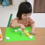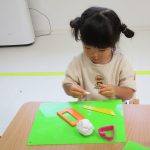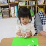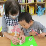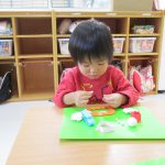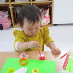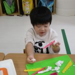 1歳児さんは粘土遊びの合間に製作もしました!!