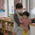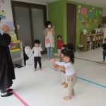 「しあわせなら手をたたこう」のお歌を歌い、1番は手をたたこう、