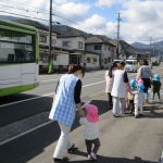 表通りを歩き、栗拾いする空き地を通ったり、バスを見たり、