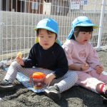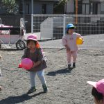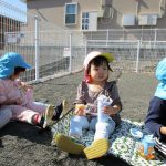 先生と一緒に影踏み遊びをしたり、1歳児さん数名は小枝を使って