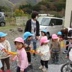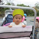 お散歩カーに乗ったり、お散歩ロープにつかまったりして出発。