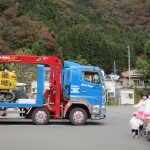 ショベルカーを載せたトレーラーが2台停まっていました。