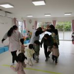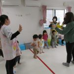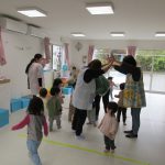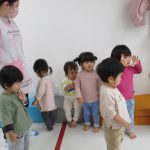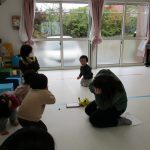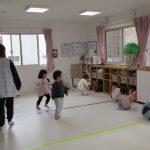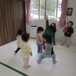みんなはかかしになって進み、お友達の号令で進んだり止まったり