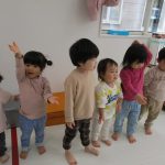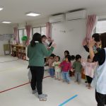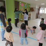 まず始めに「Hello♫」の曲に合わせて体を動かしました!!