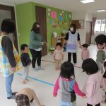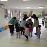みんなで輪になり、音楽に合わせながら進みトンネルをくぐります!!