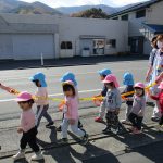 1・2歳児さんは歩いて行くので、歩いているうちに体もポカポカしてくるので