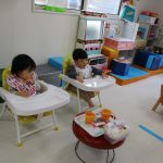 今日は0歳児さんはお部屋で玩具遊び、