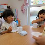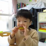今日の朝のおやつは焼き芋ごっこの予行練習でお芋を食べました🍠