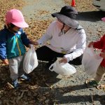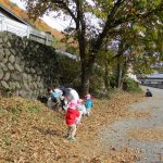 1・2歳児さんは焼き芋ごっこのために枯れ葉を集めに
