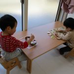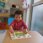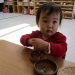 1歳児さんは一つの教具で割と長い時間集中して取り組んでいるのに対し、
