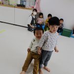 0歳児さんは玩具遊び、1・2歳児さんは椅子とりゲームをしたり、