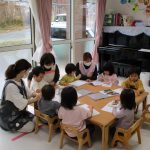 椅子とりゲームの後はお絵描き、ブロックのコーナーを設定して