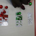 置いてあった赤・緑・白のツリーの飾りを拾い、