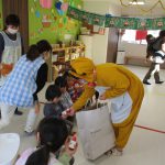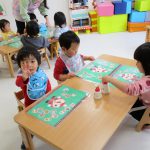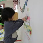 緑色と茶色のくつ下に一人ずつシールを貼ってもらいました(^_^)