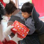 一人ずつサンタさんから手渡しでもらい、握手をしました!!