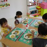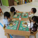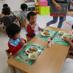 自分でお皿を持って運んできたり、おかわりをもらいに行くお友達もいて、