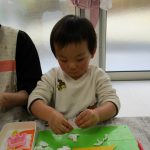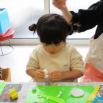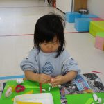 2歳児さんも丸めたり伸ばしたり、ちぎったり、