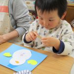 鼻・帽子・手袋は自分でのりを付けて貼りました(^_^)