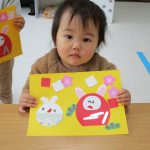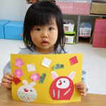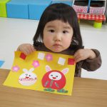 お顔が付いたうさぎダルマとうさぎを自分達で台紙に