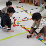 それぞれ作った車や電車を走らせて楽しみました(*^▽^*)