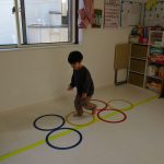 並んだ輪っかをグーグーパーで進み、