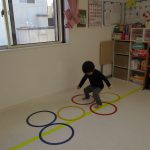 フラフープのトンネルをくぐって
