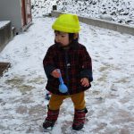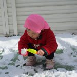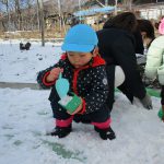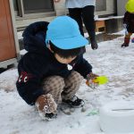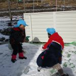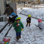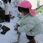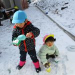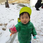 昨日降った雪が残っていたので1・2歳児さんは雪遊びをしました!!