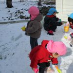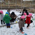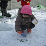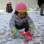1・2歳児さんは保育園脇の砂場のところで雪遊びをしました!!