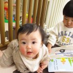 0歳児さんはお部屋で玩具やダンボールの積木で遊びました(^_^)