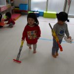 きっとお母さん達の真似をしているのでしょうね(≧▽≦)