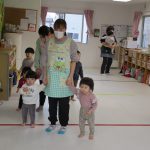 ゆっくり歩き、ピアノが止まったらみんなも止まります(^_^)