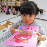 1歳児さんはバレンタインデーにちなんだ製作です!!