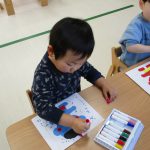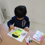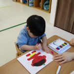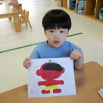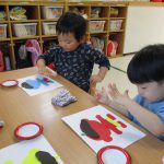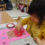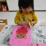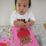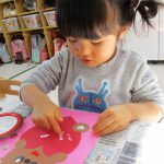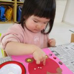 1歳児さんはバレンタインデーにちなんだ製作です!!