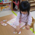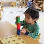 今日は0歳児さんはお部屋で遊び、1・2歳児さんはモンテッソーリのお仕事をしました。