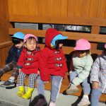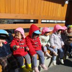 1・2歳児さんは途中のバス停でひと休み・・・