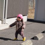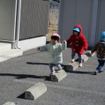 車止めの上を渡って遊び始めました!!