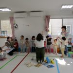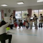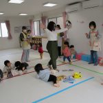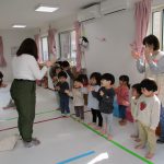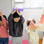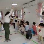英語教室では音楽に合わせて体を動かしたり、