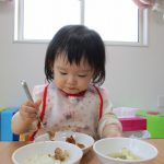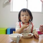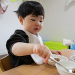 手づかみだったり、スプーンを持って自分で食べたり、