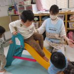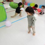 日中はお部屋で風船やすべり台、マットを使って