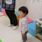2歳児さん、胸にコサージュを付けて