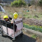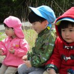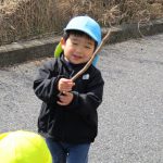 今日は0歳児さんはお部屋で遊び、1、2歳児さんはお散歩に行きました。
