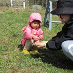 ツバキやオオイヌノフグリをお母さんに持って帰りたいと言って、