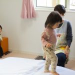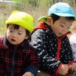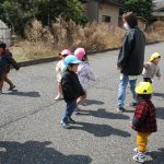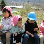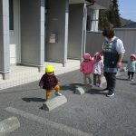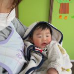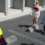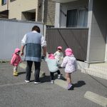 今日は0歳児さんはお部屋で遊び、1、2歳児さんはお散歩に行きました。