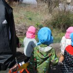 1、2歳児さんは電車の見える空き地までお散歩に行きました。