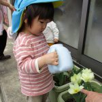 保育園に帰ってきてから、プランターのチューリップに