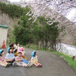 みんなで見上げているのは「はなもも」というお花です🌼