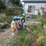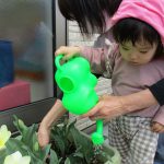 保育園に帰ってきてから、プランターのチューリップに