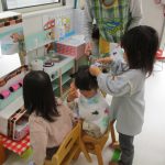 床屋さんごっこでは新しく「はさみ」と「ブラシ」の