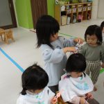 0歳児さんには今月から新しいお友達が入り、