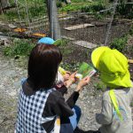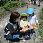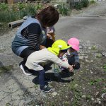 虫が出てくると2歳児さんは図鑑を開き、